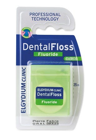 Elgydium Clinic Fita dentária com flúor para a higiene dos espaços interdentários. Extra-plana e encerada: muito resistente. Aroma a menta: hálito mais fresco.