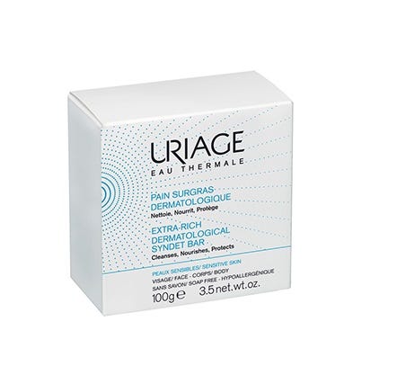 Uriage Pain Surgras é um sabonete dermatológico formulado com tensioativos ultra-suaves, sem sabão, que garantem uma limpeza delicada, tornando-o ideal para utilizar em todos os tipos de pele. Graças ao extracto de manteiga de I´llipé, este sabonete possui intensa ação nutritiva e preserva o filme hidrolipídico cutâneo, evitando os efeitos secantes da água calcária. Enriquecido com água termal Uriage, rica em sais minerais, contribui para uma constante hidratação, suavidade e proteção da pele, tornando-a mais saudável dia após dia. Sem conservantes. Hipoalergénico.