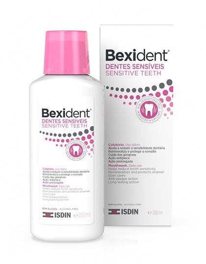Bexident Dentes Sensíveis Colutório é formulado com ingredientes de ação redutora da sensibilidade (nitrato de potássio), promotora da mineralização do esmalte (fluoreto de sódio) e anti-placa que permitem reduzir a dor nos dentes e ter as gengivas sãs e protegidas. Graças ao seu excipiente bioadesivo, a sua ação é prolongada no tempo. Contém um sabor agradável para estimular a sua utilização. Sem álcool.
