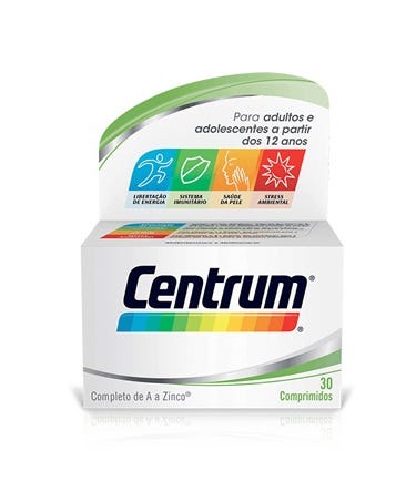 Suplemento alimentar com vitaminas e minerais, que contribui para a manutenção do bem-estar geral.