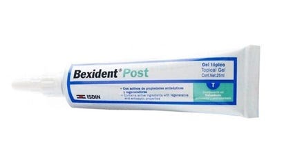 Bexident Post Gel Tópico contém quitosano com ação reparadora por formar uma rede de fixação para a normalização da mucosa, dexpantenol com ação suavizante e Cloro-hexidina com ação antissética. Ação prolongada devido ao seu excipiente bioadesivo de sabor agradável. Está indicado para a proteção e normalização das gengivas e da mucosa oral após procedimentos dentários invasivos, tratamento periodontal e implantes, cirurgia periodontal e maxilo-facial.