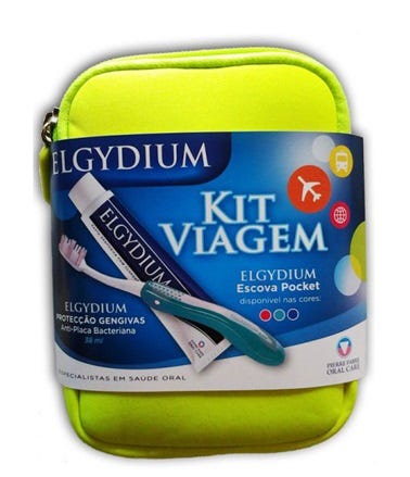 Elgydium Escova de Dentes Pocket Média é uma escova de dentes qcom cabo dobrável medindo 10 cm depois de fechada. Graças ao seu tamanho, oferece condições de higiene dentária em todas as ocasiões, sem ocupar espaço (férias, trabalho, desporto). Disponível em 2 cores: azul e verde. Dureza: média. Elgydium Pasta Gengivas previne a formação da placa bacteriana e do tártaro que estão na origem das gengivites e outros problemas gengivais. Mantém os dentes e as gengivas saudáveis.