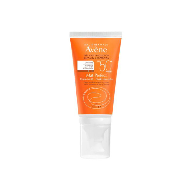Avène Solar Mat Perfect Cor FPS 50+ é um protetor solar de rosto com textura fluida, indicado para pele sensível, mista a oleosa. A fórmula oil-free contém um sistema de filtros UVA/UVB que confere proteção muito elevada; pro-tocoferil em associação ao glucósido de ascorbilo para uma ação antioxidante; e monolaurina com ação seborreguladora. Uniformiza e ilumina a pele. Textura não oleosa, com toque seco. Acabamento mate. Resistente à água. Não comedogénico. Sem perfume. Como utilizar: aplicar no rosto, 30 minutos antes da exposição solar. Reaplicar frequentemente.